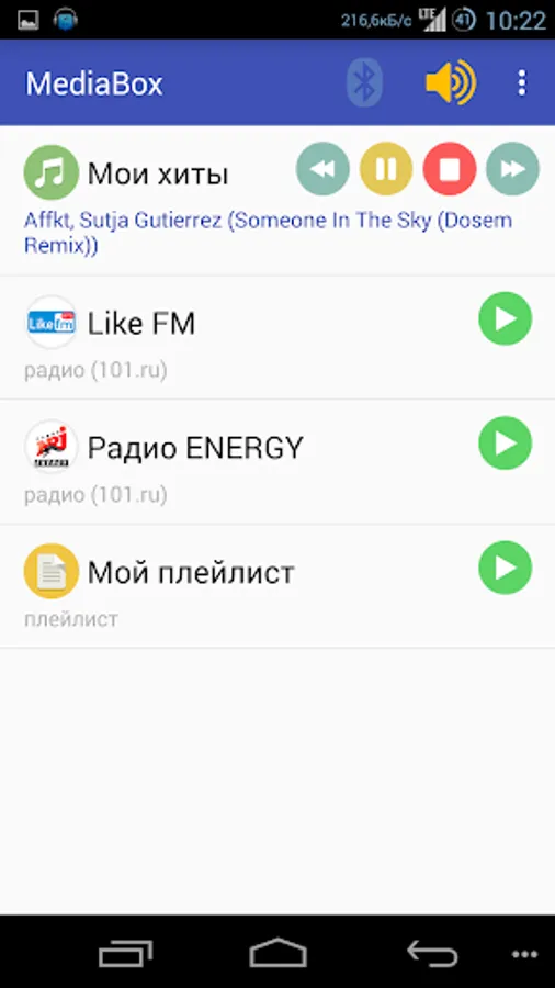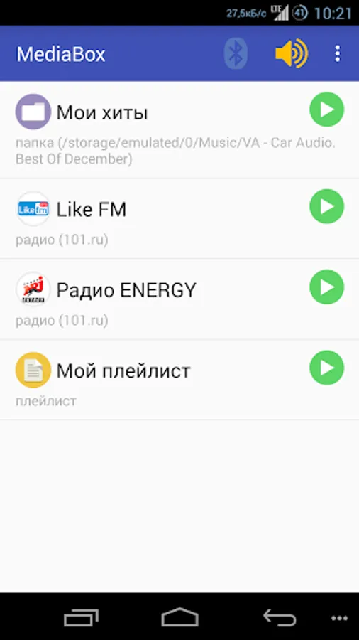 Create your own media collection of music files on your smartphone, as well as over 100 online radio stations