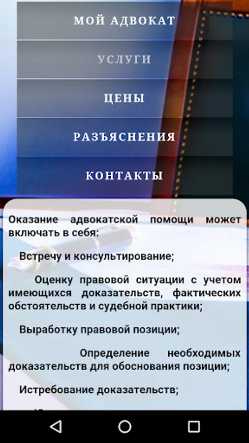 We provide services to both individuals and legal entities. We have gained a truly rich and diverse experience that allows you to solve various problems, and maintain the most complex cases and disputes.