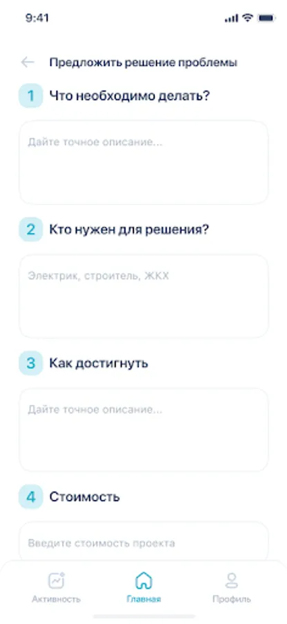 Our mission is to create a project in which residents of Russia will be able to openly describe the problems of their city and jointly solve them.