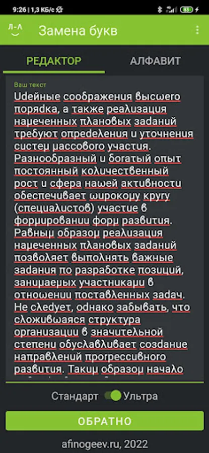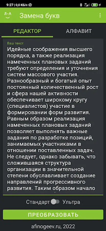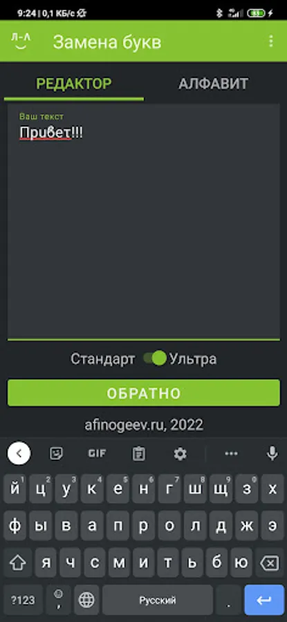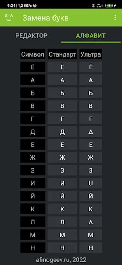 Данное приложение выполняет замену символов кириллицы на схожие по написанию символы.