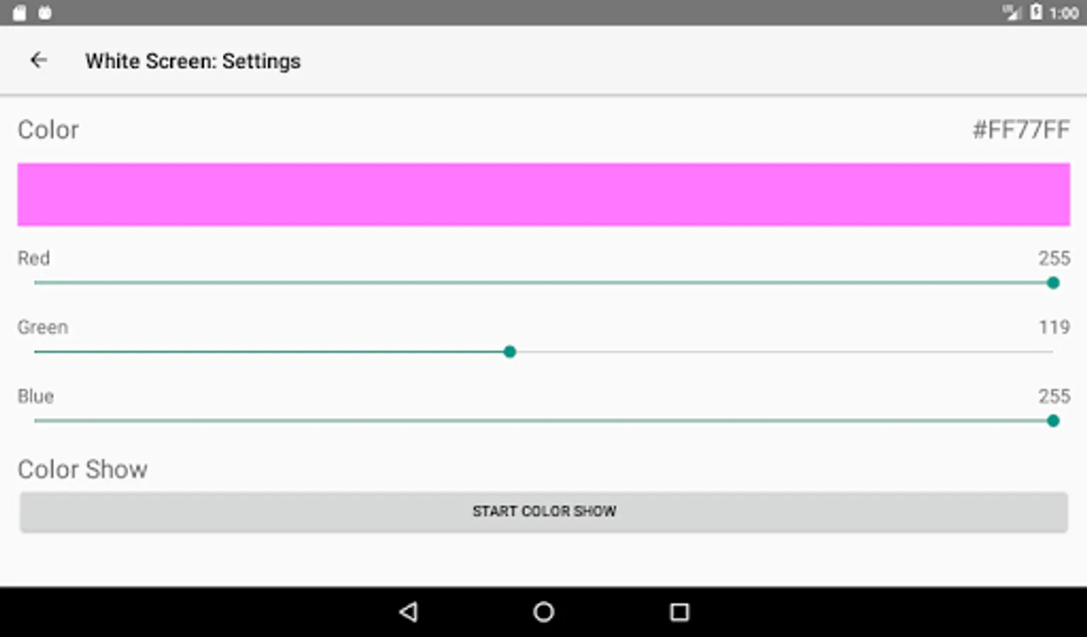 ✓ Fullscreen mode: the entire screen turns white (or any other color)