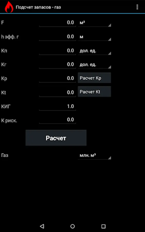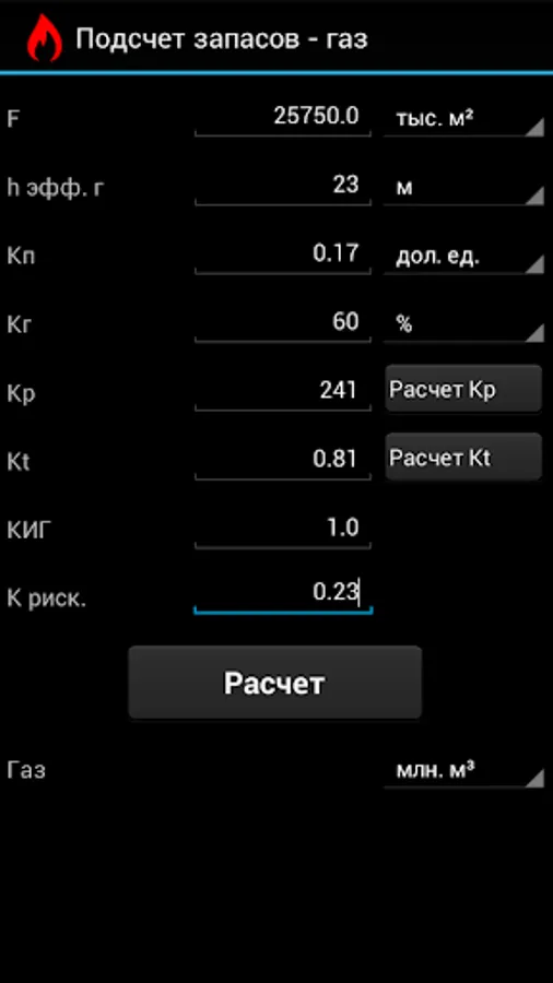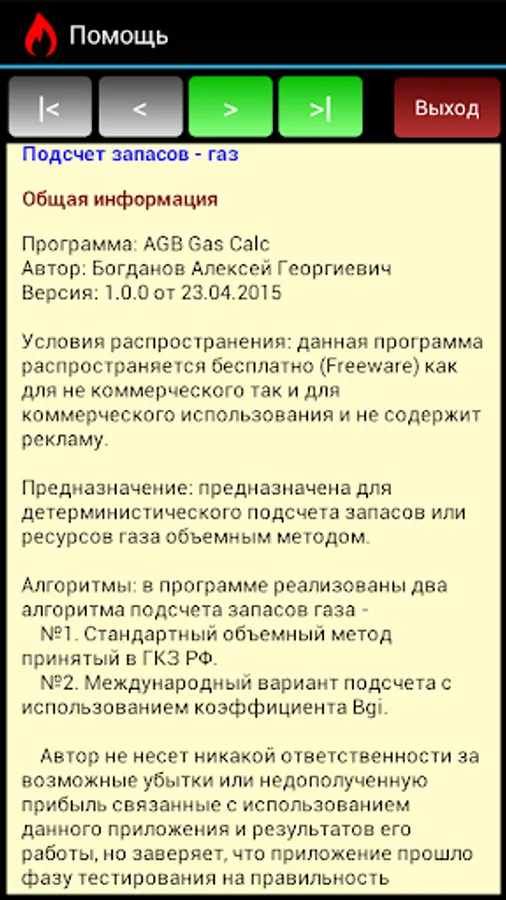 AGB Gas Calc - application allowing to compute inplace and recoverable gas volumes. Geologic risk factor coefficient also support by this application. Two algorithms supported: one used in Russia / exUSSR and second one standard international algorithm. Flexible support for various input values units. Application distributed as Freeware, no built-in Ads, no special permissions required from Android OS. Interface and help files available in English and Russian languages.