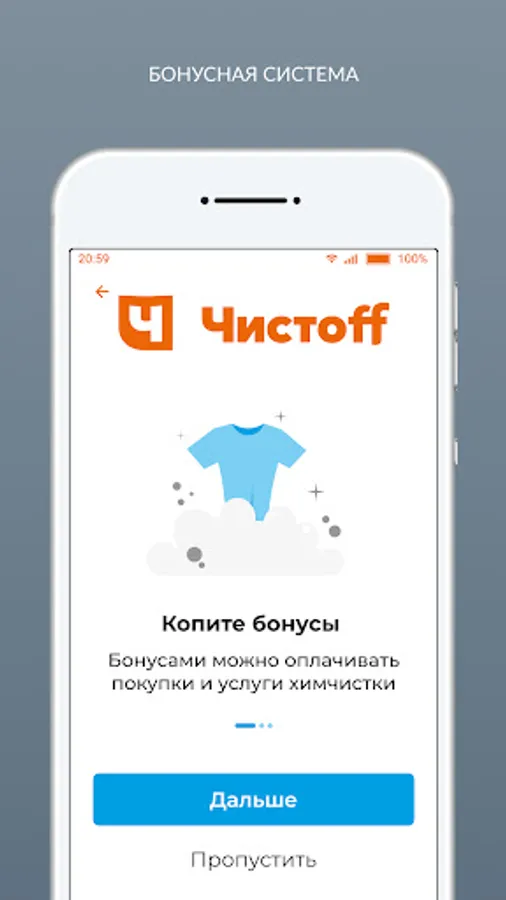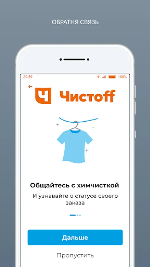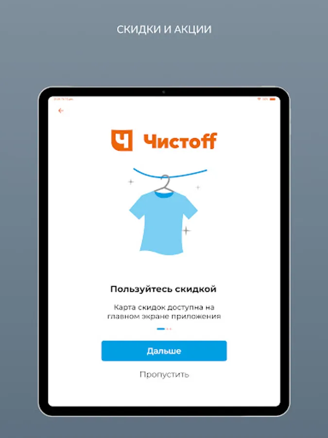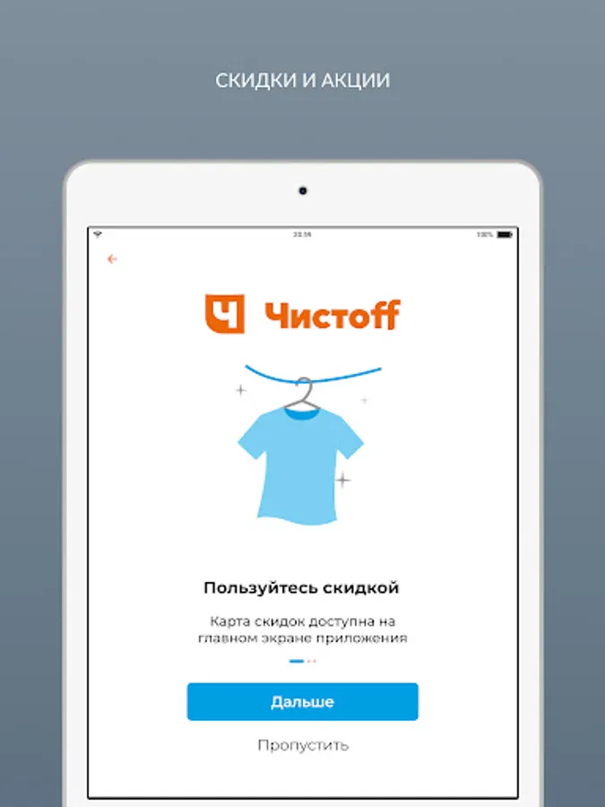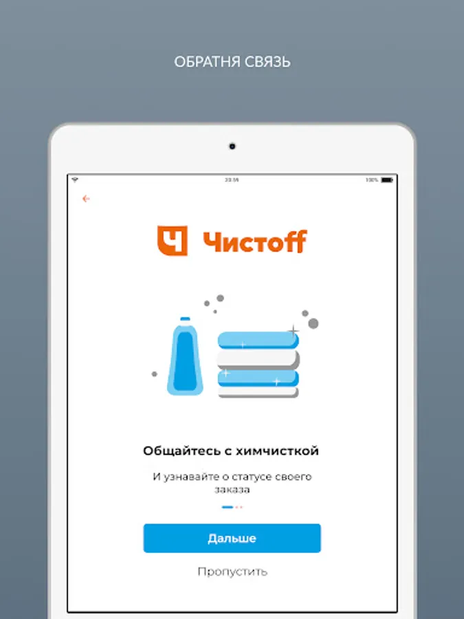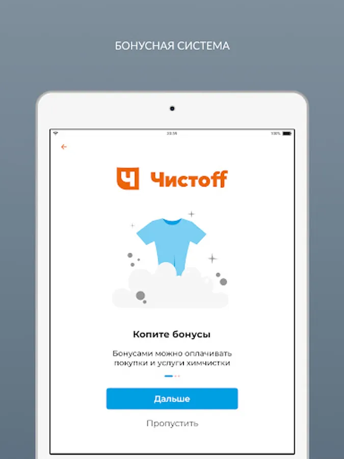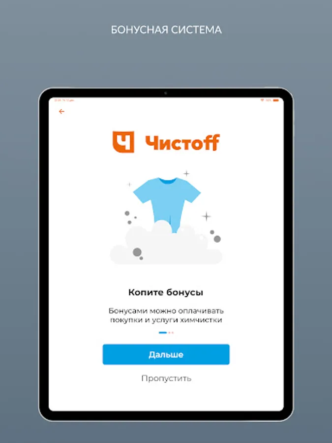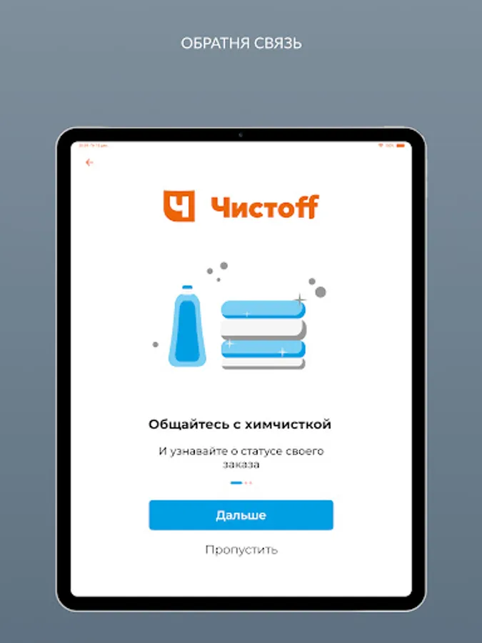 An application that allows not only to see the dry cleaning client information about their bonuses, collection points and promotions, but also to call a courier online!