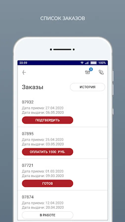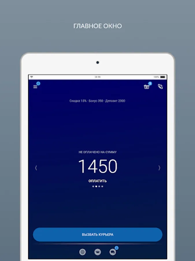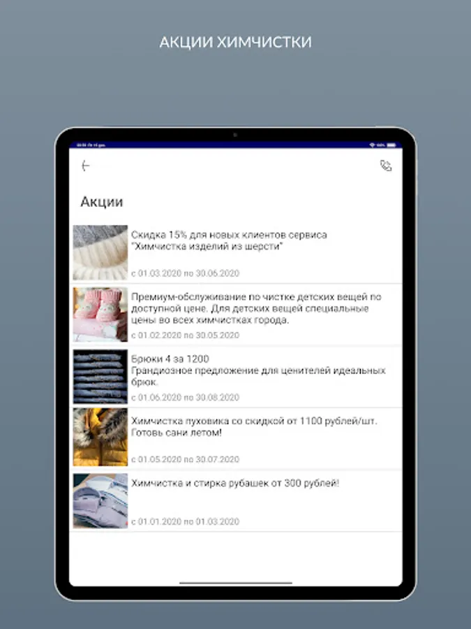 An application that allows not only to see the dry cleaning client information about their bonuses, collection points and promotions, but also to call a courier online!