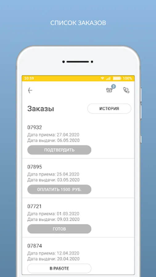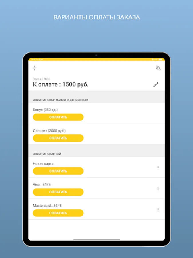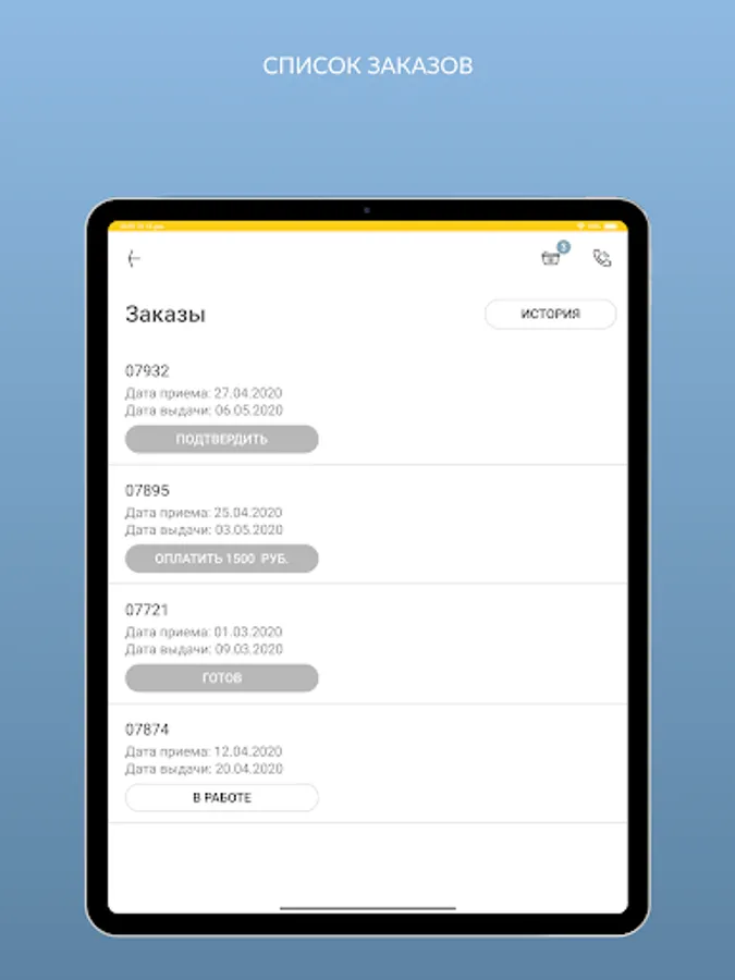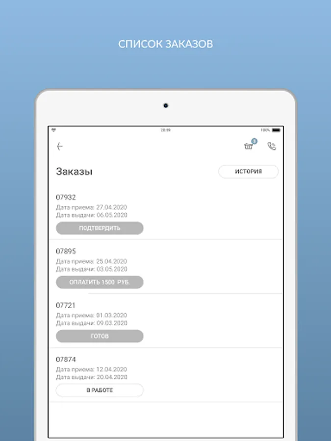 An application that allows not only to see the dry cleaning customer information about their bonuses, orders, collection points and promotions, but also to call a courier online!