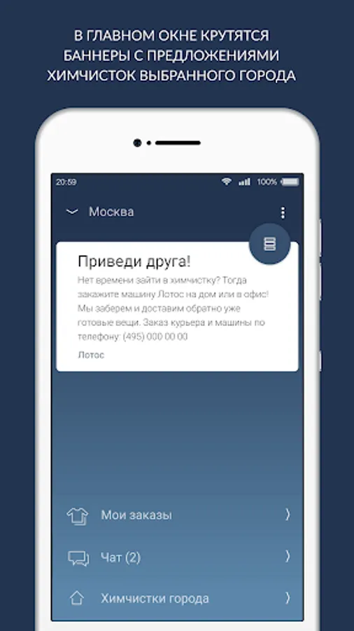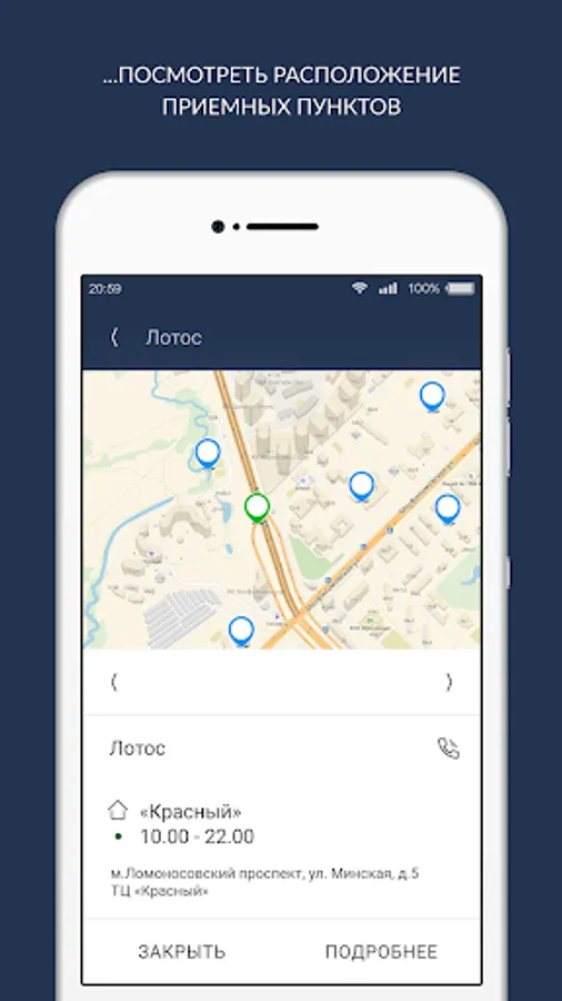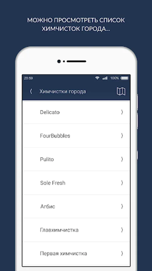 The app allows you to see information on the reception centers cleanings cities of Russia, Kazakhstan, Ukraine, Belarus and Latvia are connected to the service "Dry info": their collection points location, opening hours, phone numbers, current promotions and news. Furthermore, using the application can be found: