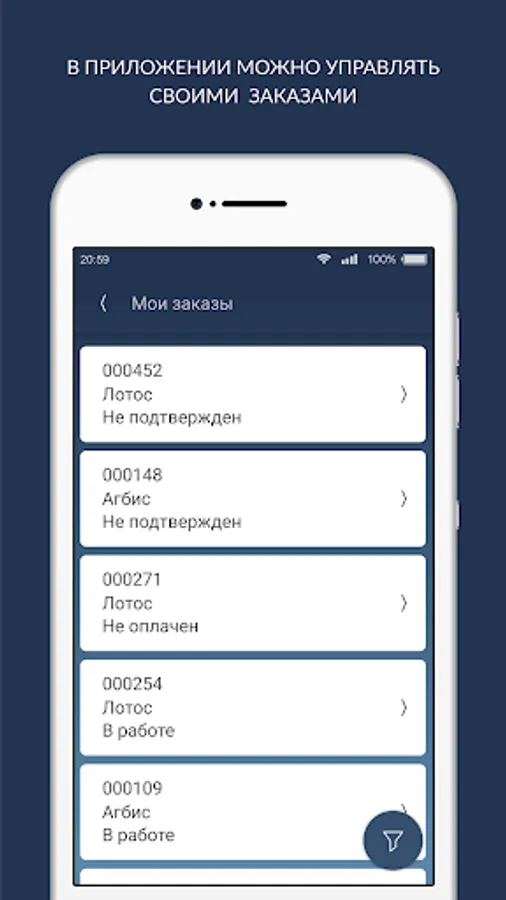 - see their orders at work, their status, order history;