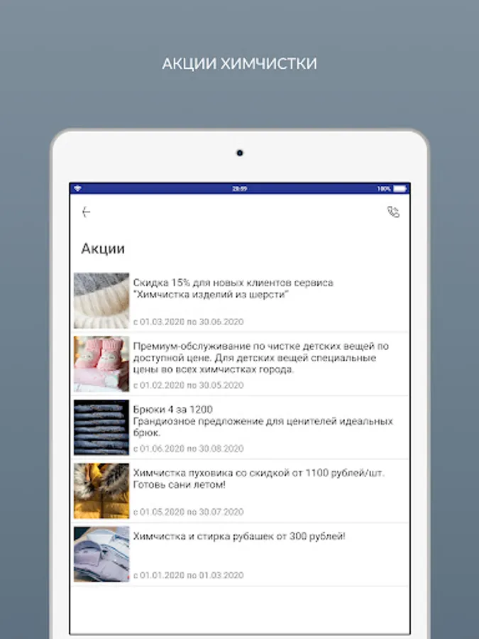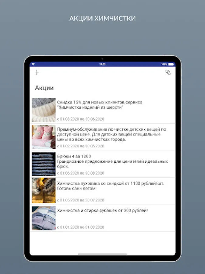 An application that allows not only to see the dry cleaning client information about their bonuses, collection points and promotions, but also to call a courier online!