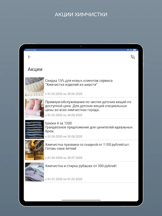 - get acquainted with the promotions of dry cleaning;