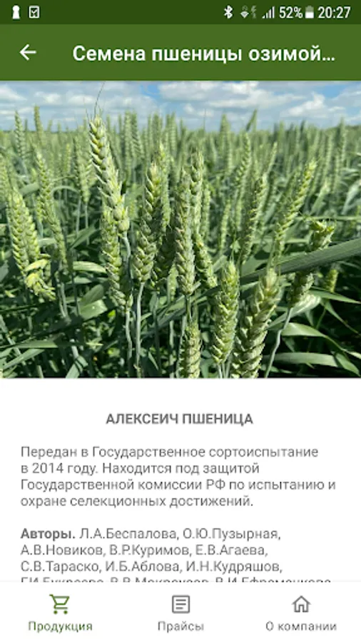 This application implements the ability to see seed buyers with current prices, crops and varieties presented for sale.