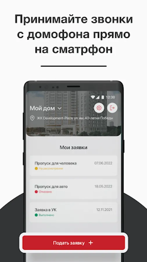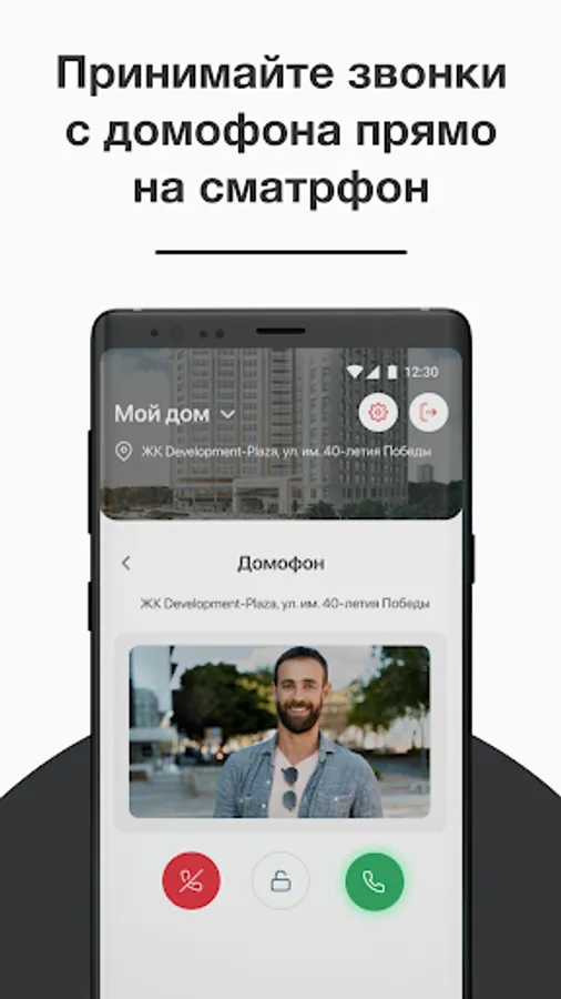 From D-Plaza you can see what is happening on the territory of the complex through webcams. And if relatives, colleagues or friends come to you, you can answer them on the intercom without getting up from the couch. Simply take out your smartphone and press the desired button in the application.