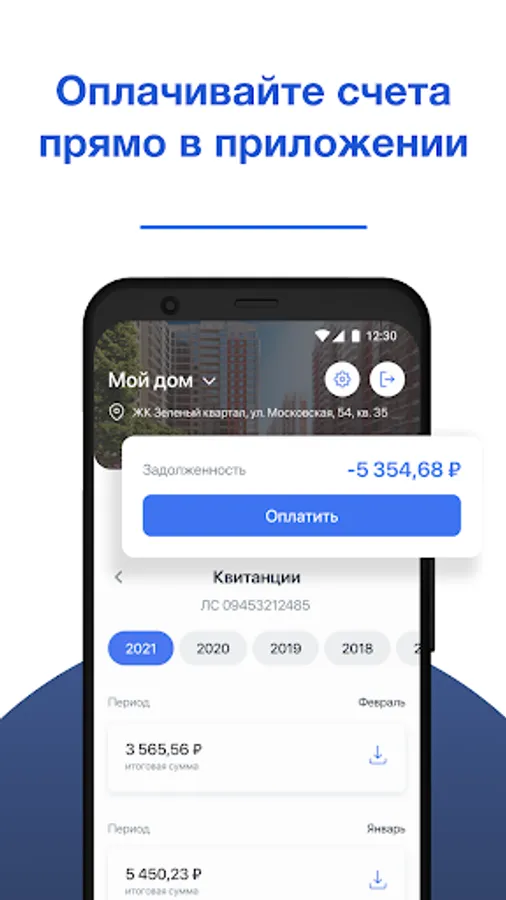 Inside you will find everything related to your apartment or facility that is under management: a store of premises, a marketplace where goods and services are available. As well as the services of the management company, common house and smart devices inside the apartment.