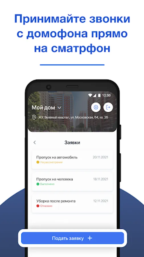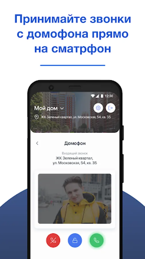 With Homyapp you can see what is happening on the territory of the complex through webcams. And if relatives, colleagues or friends come to you, you can answer them on the intercom without getting up from the couch. Simply take out your smartphone and press the desired button in the application.