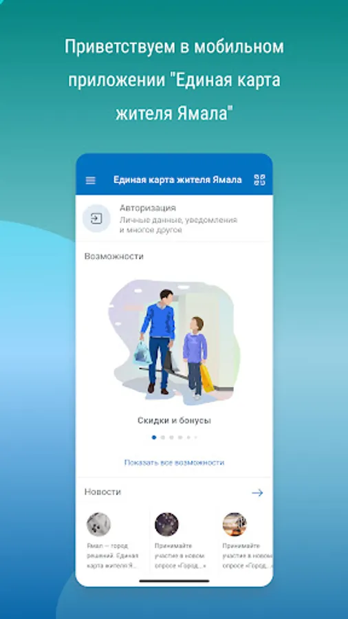 Using the mobile application "Unified card of the resident of Yamal" a resident of the Yamalo-Nenets Autonomous Okrug will be able to: