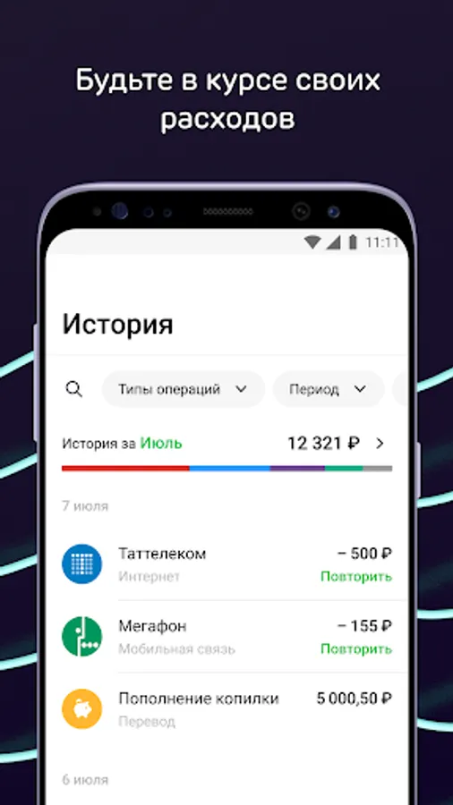 • Open deposits to save and accumulate money. Connect automatic replenishment - the application will save by yourself.