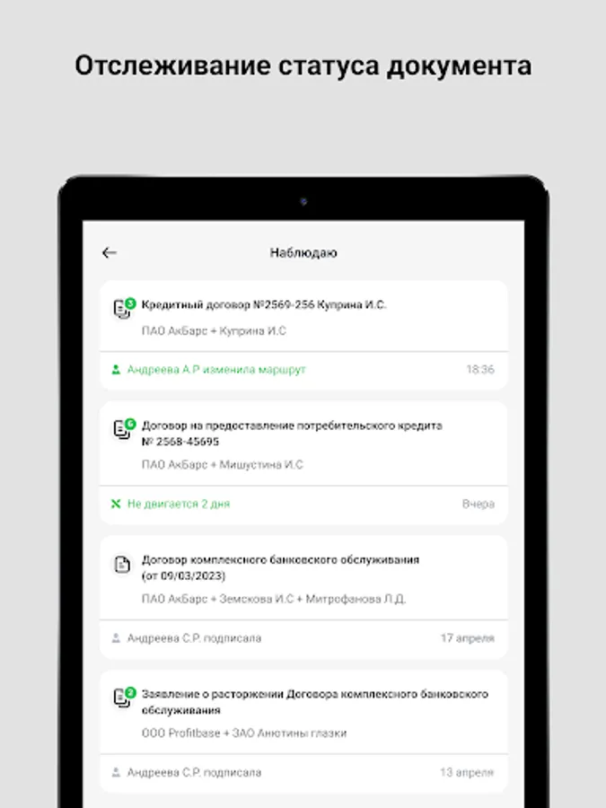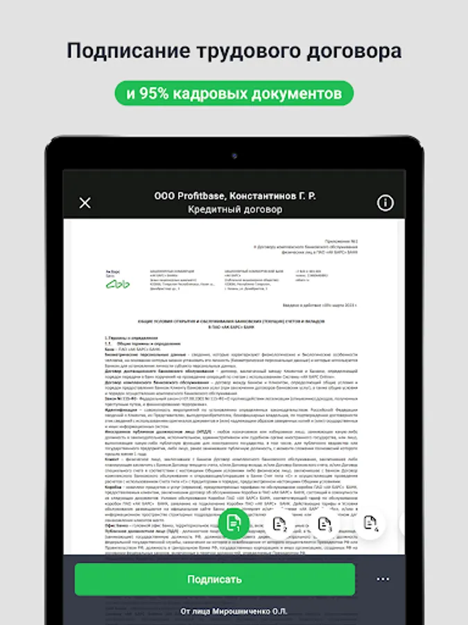 AbbDoc is a mobile electronic document management system with a bank. You will have access to a service for receiving and sending documents signed with an electronic signature. All documents in AbbDoc are legally binding.