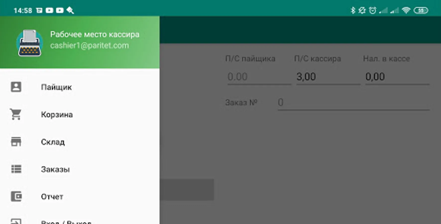 The Cashier Parity application is intended for the cashier and provides functions: