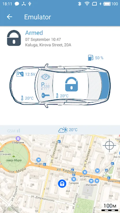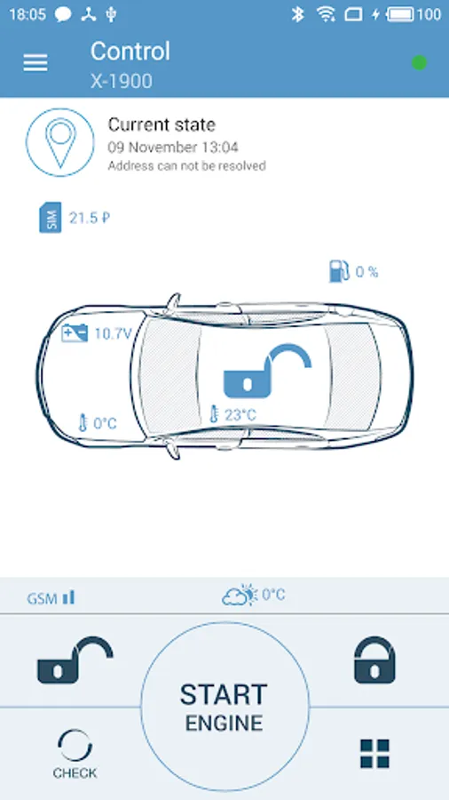 – Monitoring the current state of your car: statuses of all security zones and sensors, current fuel level (it depends on connections), engine temperature, car interior temperature, outside temperature (additional sensor is required), current car location (for systems with a GPS/GLONASS-receiver).