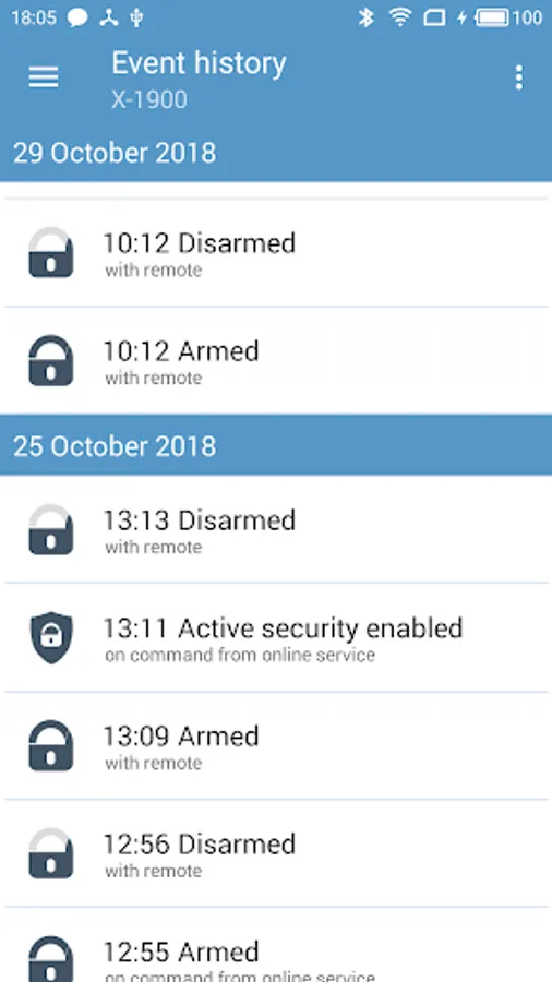 – History of events with coordinates, time and states of all security zones, sensors and other service information.