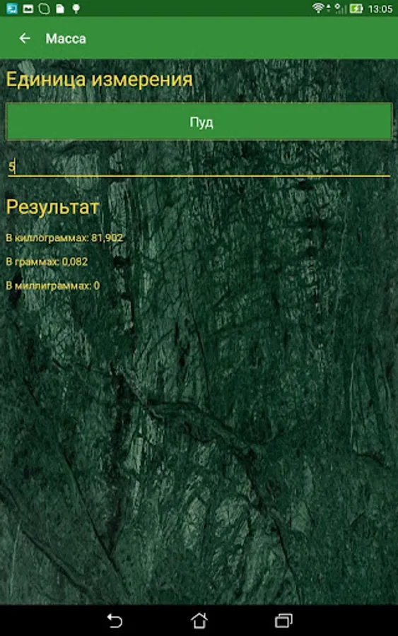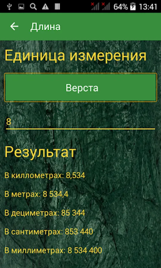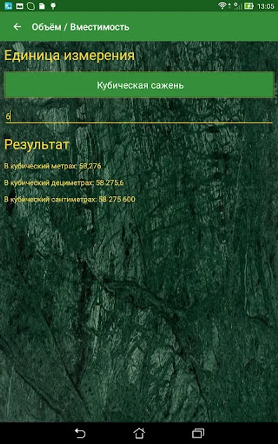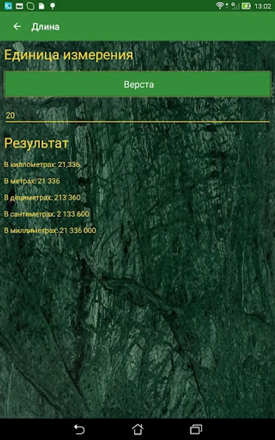 The program allows you to convert old Russian units to SI units or multiples and sub them. For example: fathom - 2.13360 meters, which is very convenient for historic surveys, archaeological excavations, when you want to compare an old Russian measure to contemporary units of calculation.