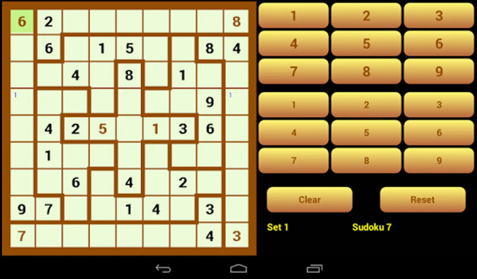 - Press the button with the number to be placed in a box (the button with the small figures are notes and are not checked for errors)