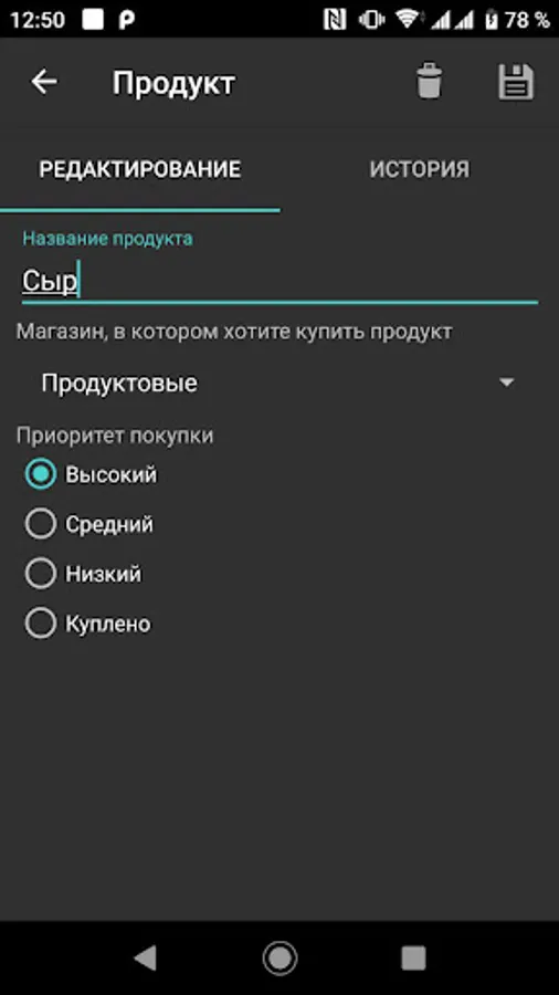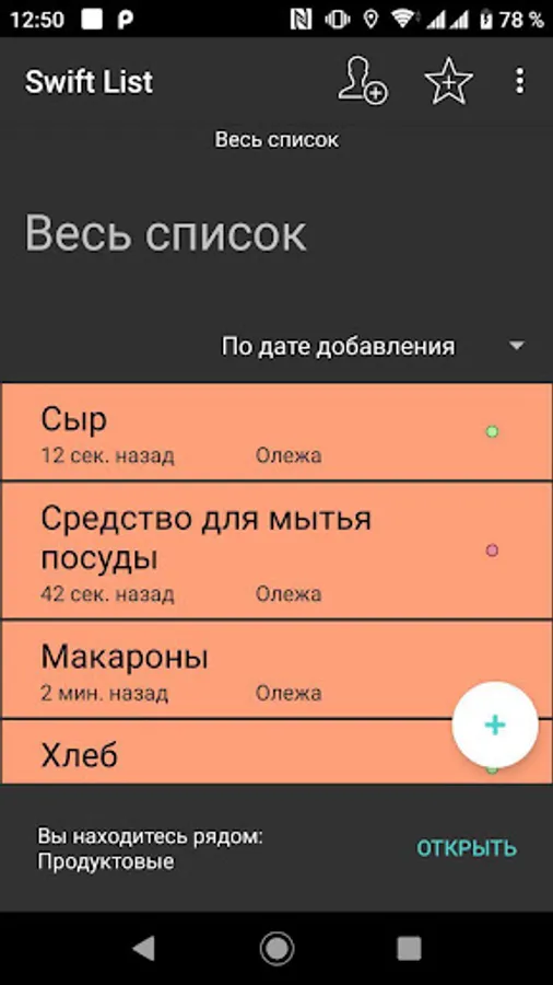- When changing the status of the product (added / purchased), all users of the list will receive notifications about it.