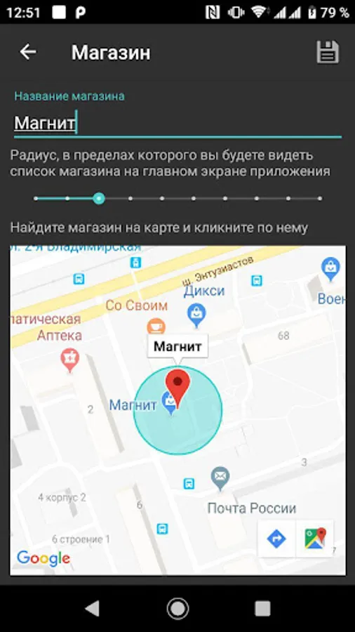 - Depending on your location, the application creates a shopping page that should be made here and now.
