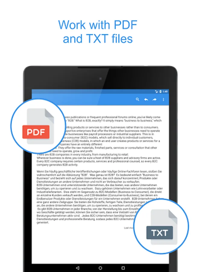 - PDF and TXT files: export your notes to PDF and TXT files or convert the existing file to your notes