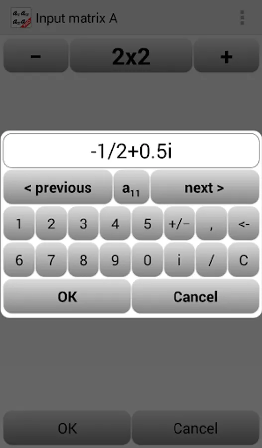 - Complex numbers (i, 1+i, 1/2-2i, 0.5+2/3i etc.).
