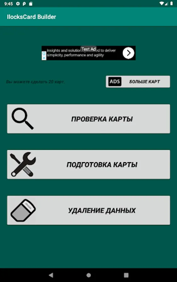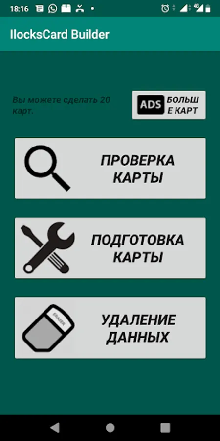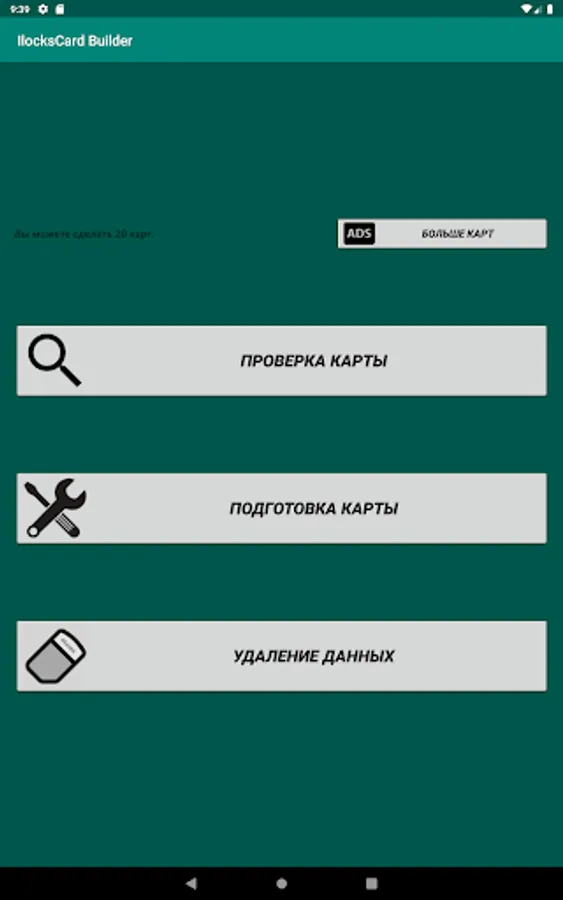 The program for creating access cards for electronic locks in the rooms of the Ilocks hotel. To create access cards, you must have empty Mifare Classic 1K cards with an S50 chip (or a Chinese equivalent with a fixed UID). Your phone must have an NFC chip.