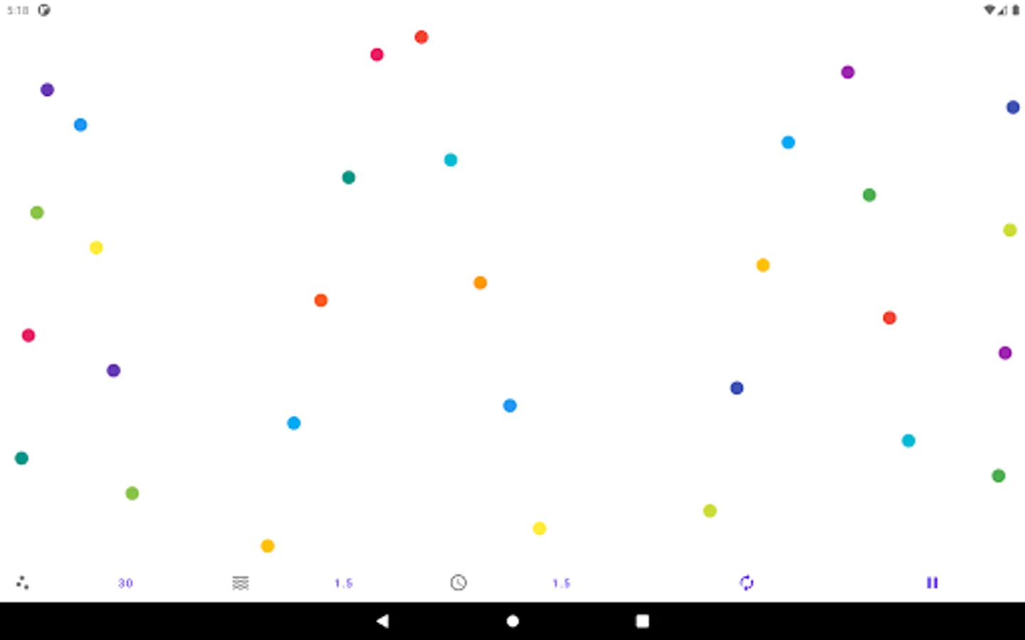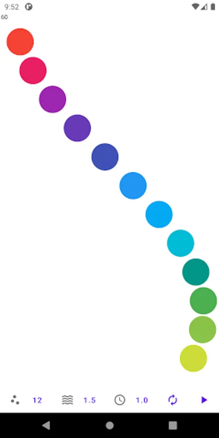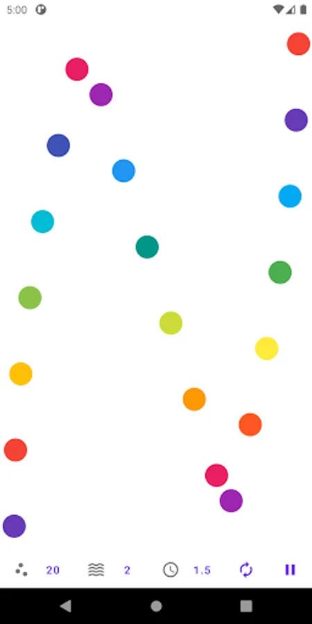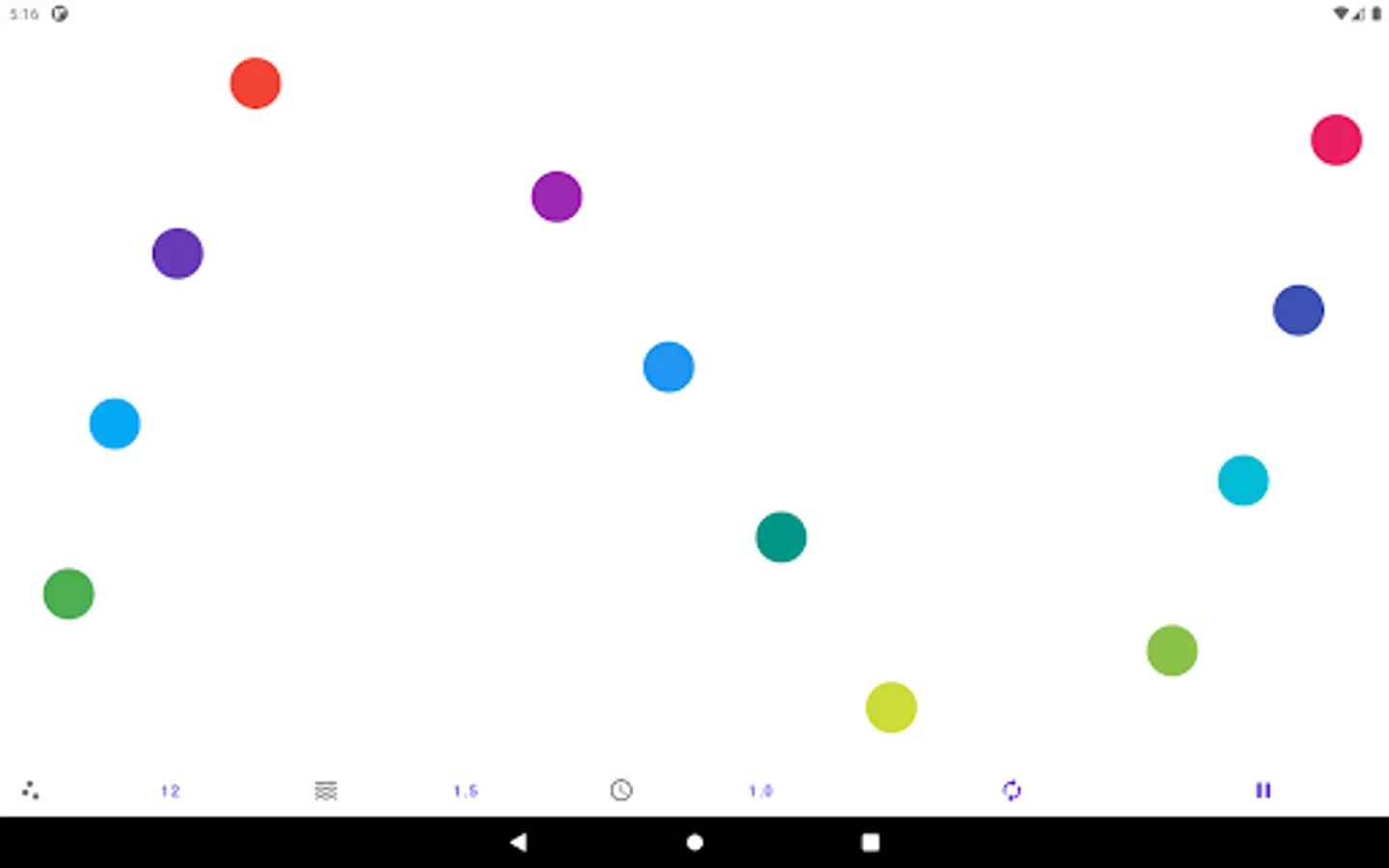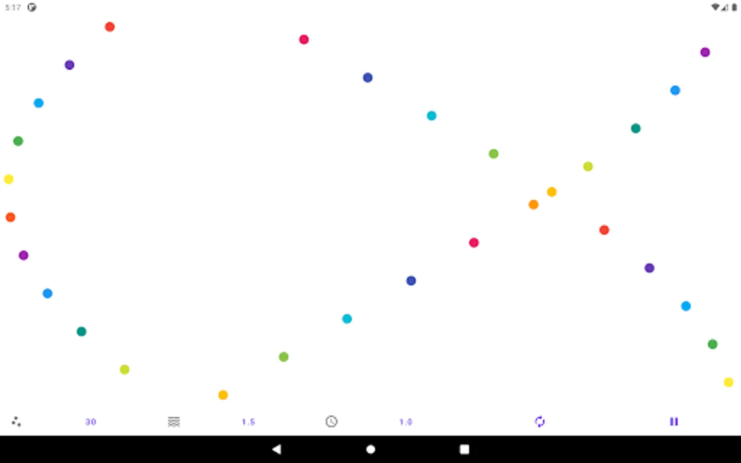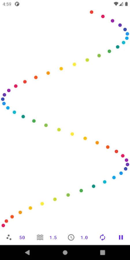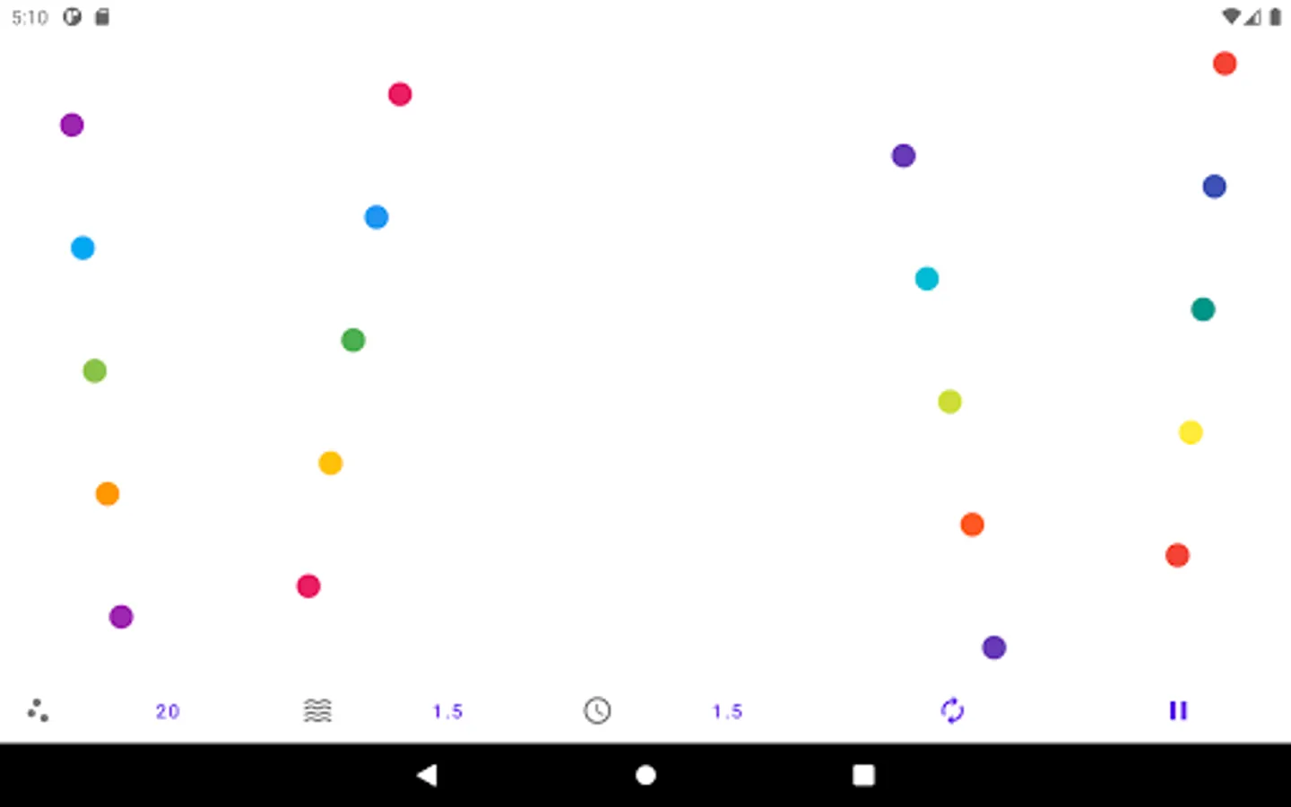 Each pendulum has slightly longer period than it's previous neighbor. Play with the number of pendulums, period delta, and time scale, and observe the emerging motion patterns.