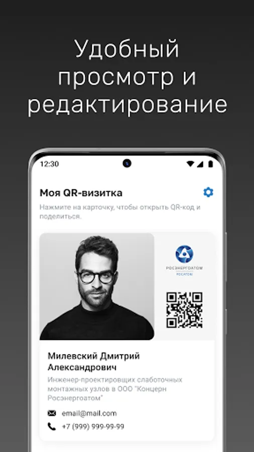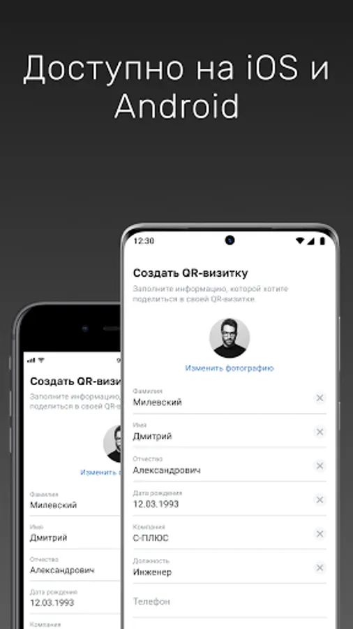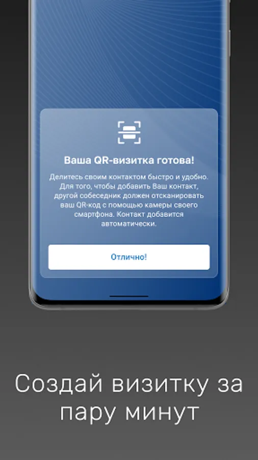 Создайте собственную QR-визитку, заполнив ваши данные. Делитесь своим контактом в одно касание.