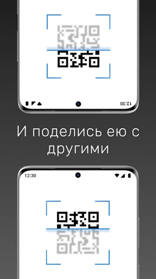 Просто откройте приложение и покажите QR-код вашему собеседнику. Собеседник сканирует QR-код с помошью камеры смартфона, и контакт с вашими данными добавляется в его записную книжку.