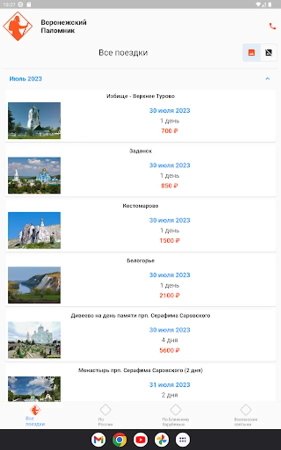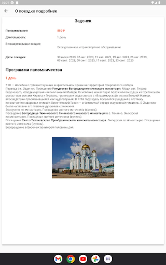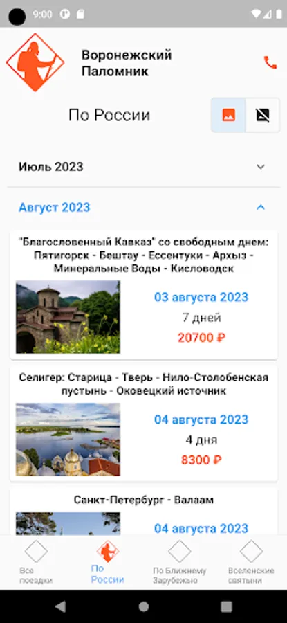 The mobile application is designed to display up-to-date information of the Pilgrimage Center of the Voronezh Diocese of the Russian Orthodox Church, first of all, the schedule of trips of pilgrimage groups.