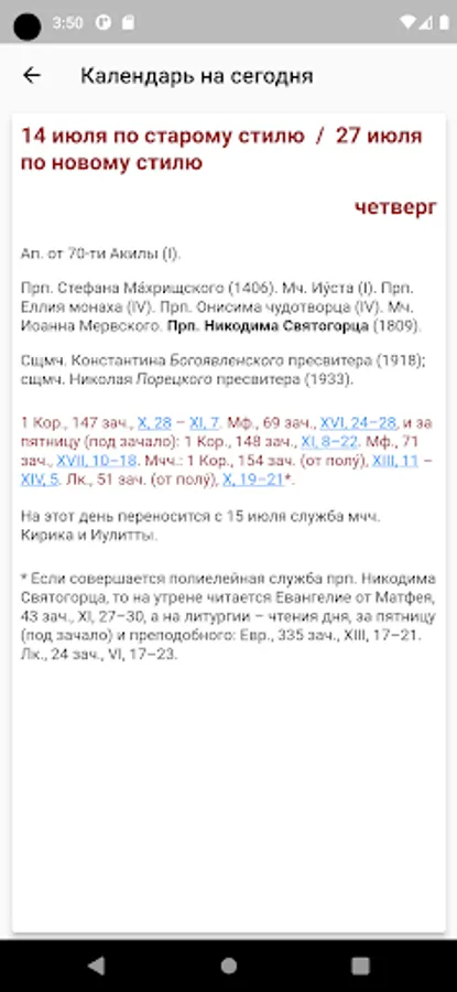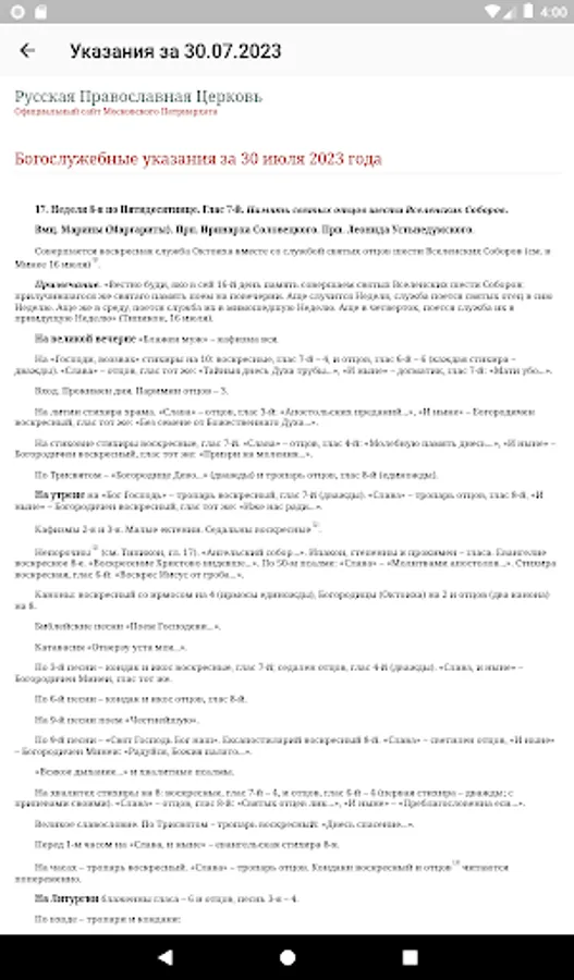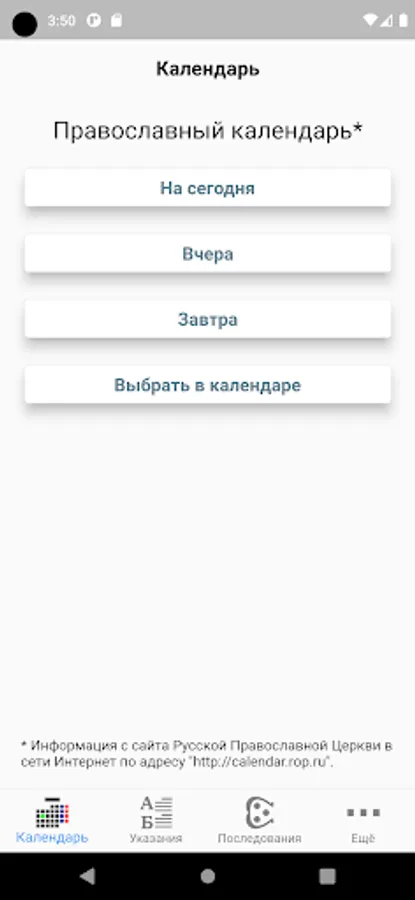 2. The official calendar of the Russian Orthodox Church on the Internet at "http://calendar.rop.ru". The content corresponds to the printed version of the Patriarchal Calendar of the Publishing House of the Moscow Patriarchate.