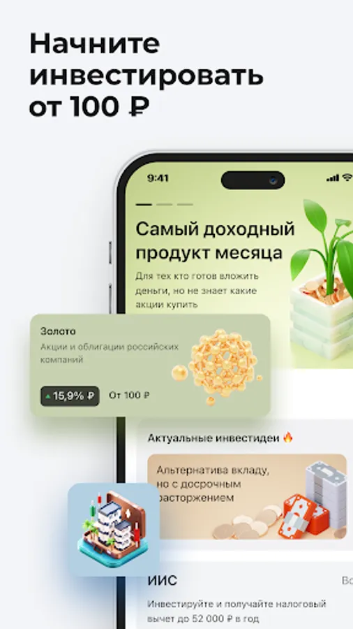 • Save money. A balanced portfolio of various securities and instruments, even with a minimum investment of 100 rubles.