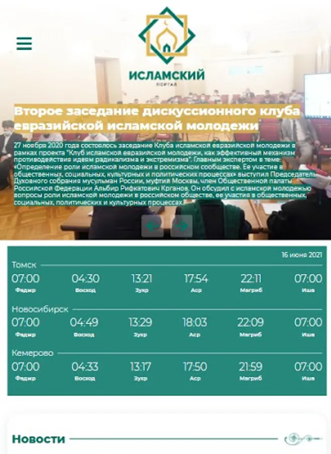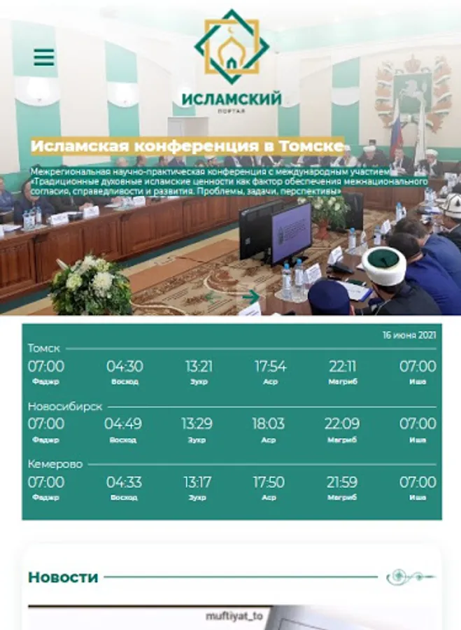 The official portal of the Centralized Religious Organization of the Regional Spiritual Administration of Muslims in Tomsk and Tomsk Oblast. News of the Islamic community of the region, events, prayer schedules, Islamic library, encyclopedia of Islam, history of Islam in Siberia, audio library - Koran, Sunnah, nasheed.