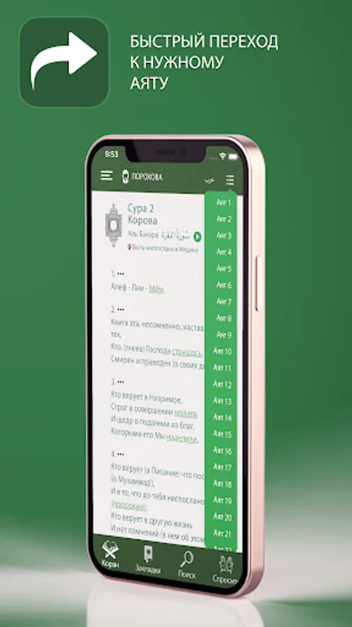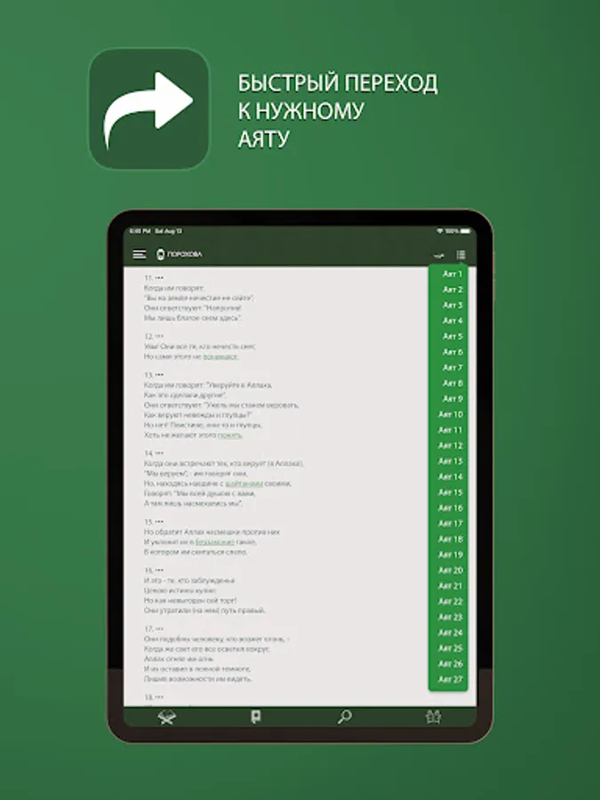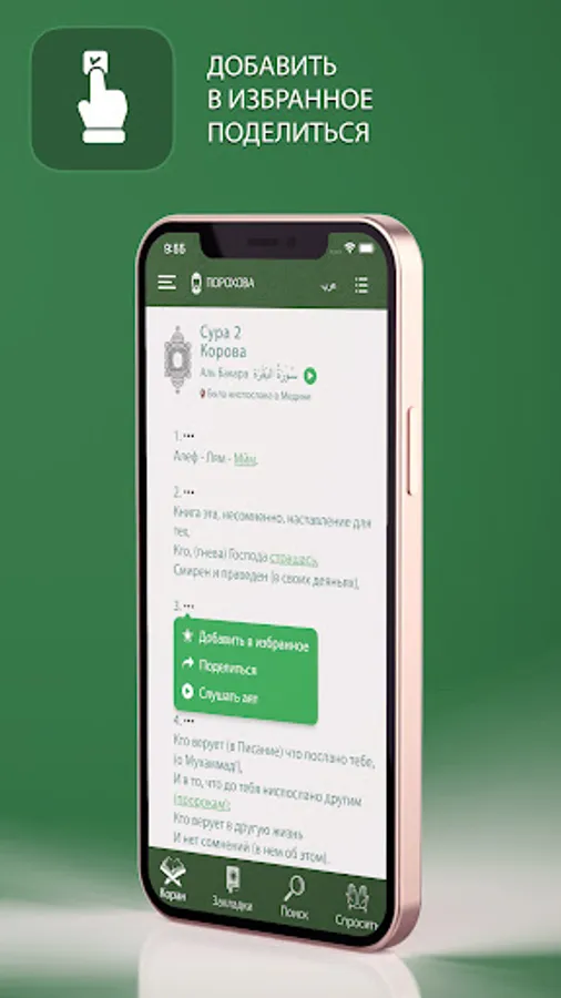 The application of the Holy Quran and Hadith of the Prophet is a unique find for every Muslim. It is convenient to read and listen to the Holy Quran (in Russian and Arabic), study and share interesting verses of the Quran with friends and family via telegram, whatsapp, facebook, Instagram, SMS and in any convenient way.