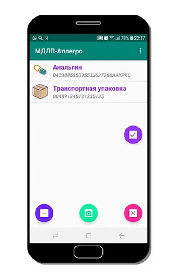MDLP-Allegro - an application for working on a smartphone with labeled drugs. The software product implements the collection of Sgtin (KIZov) and SSCC, followed by unloading in MDLP. The solution is ideal for retail sales of drugs with a small turnover, dental clinics, clinics. To fully work with IS MDLP (“Honest Sign”), you do not need to purchase additional equipment and software.