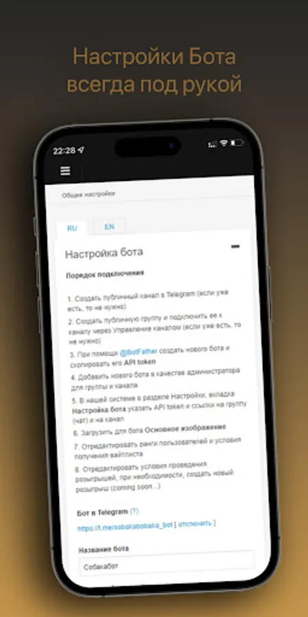 Bot for owners of telegram channels, which will increase the activity of your community and will not let you get bored. The bot moderates the chat, helps arrange Airdrops, joint contests, collabs, charges cryptocurrencies, issues whitelists, and allows you to set up a referral system. A system of statistics will appear in the chat, which accrues experience, levels, ranks, and gives rewards. Many more features will become available with CABot.