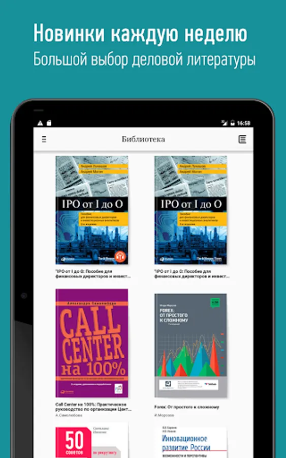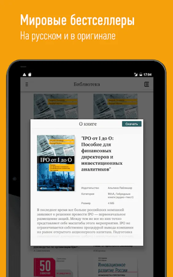 Development Academy Library - a collection of books covering the most relevant topics and challenges of modern business. It gives access to hundreds of books on the main lines of business, scientific and popular literature in electronic form. Book publishers Alpina Publisher, Alpina Non-fiction and non-fiction can be read on any device and at any time, even without an active internet connection.