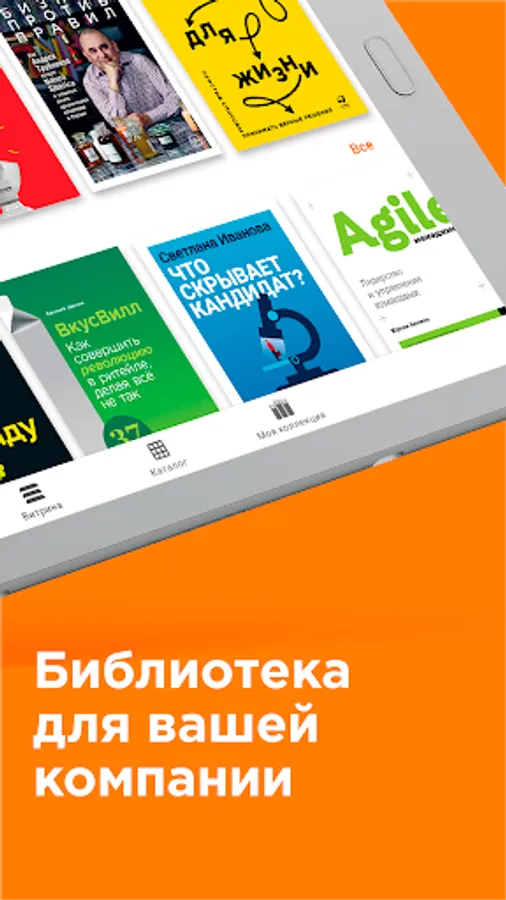 - Install a branded application with a convenient HR-office and viewing statistics, and we will select books that will be interesting for your employees.