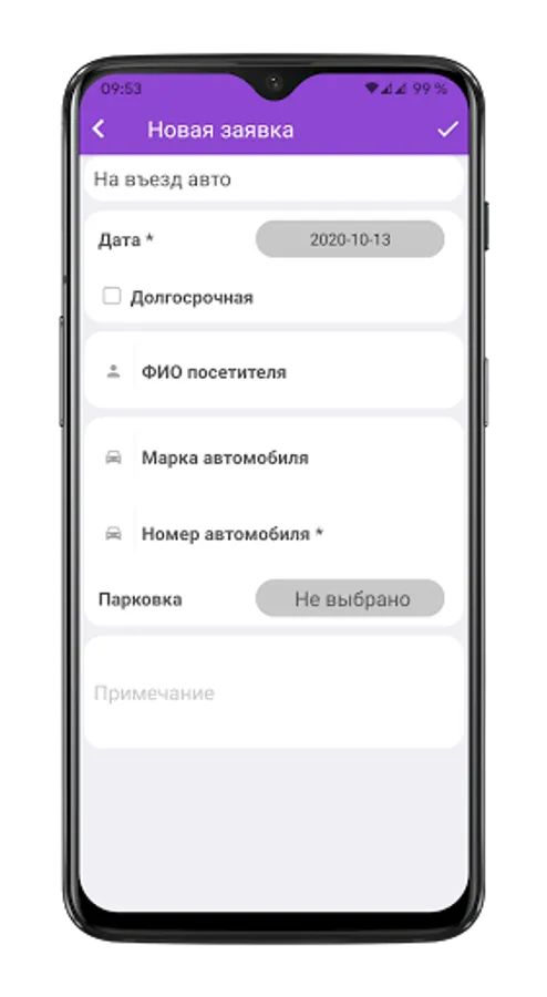 - Applications for visiting, bringing / taking out material values, for making passes, for performing work for various services of the management company.