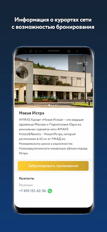 Convenient booking forms, appointment list and race history, online store, events poster, current promotions and services of AMAKS Hotels & Resorts chain resorts Novaya Istra, Krasnaya Pakhra, Shakhtar, Staraya Russa, Ust-Kachka , Orbit.