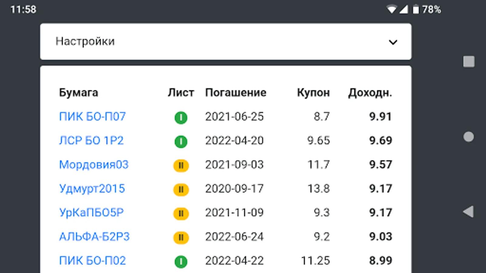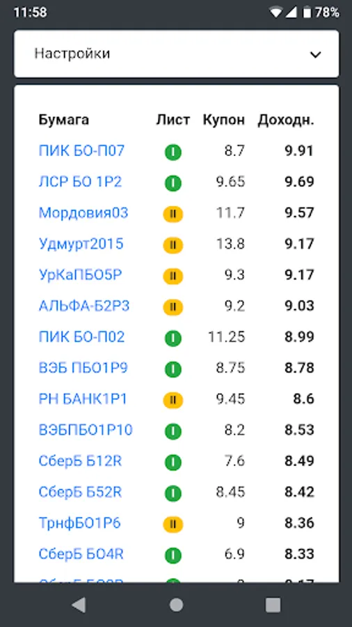 With this application you will select the best liquid bonds that are actively trading now on the Moscow Exchange (MOEX).