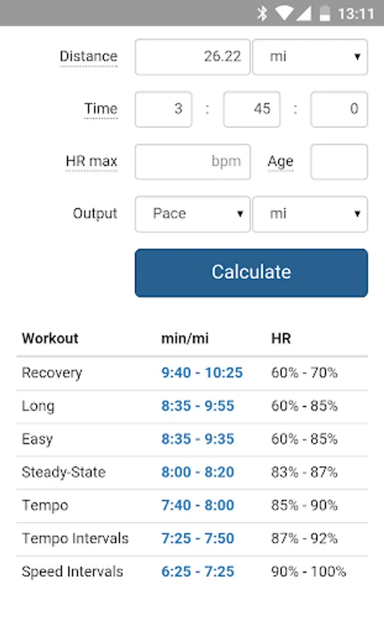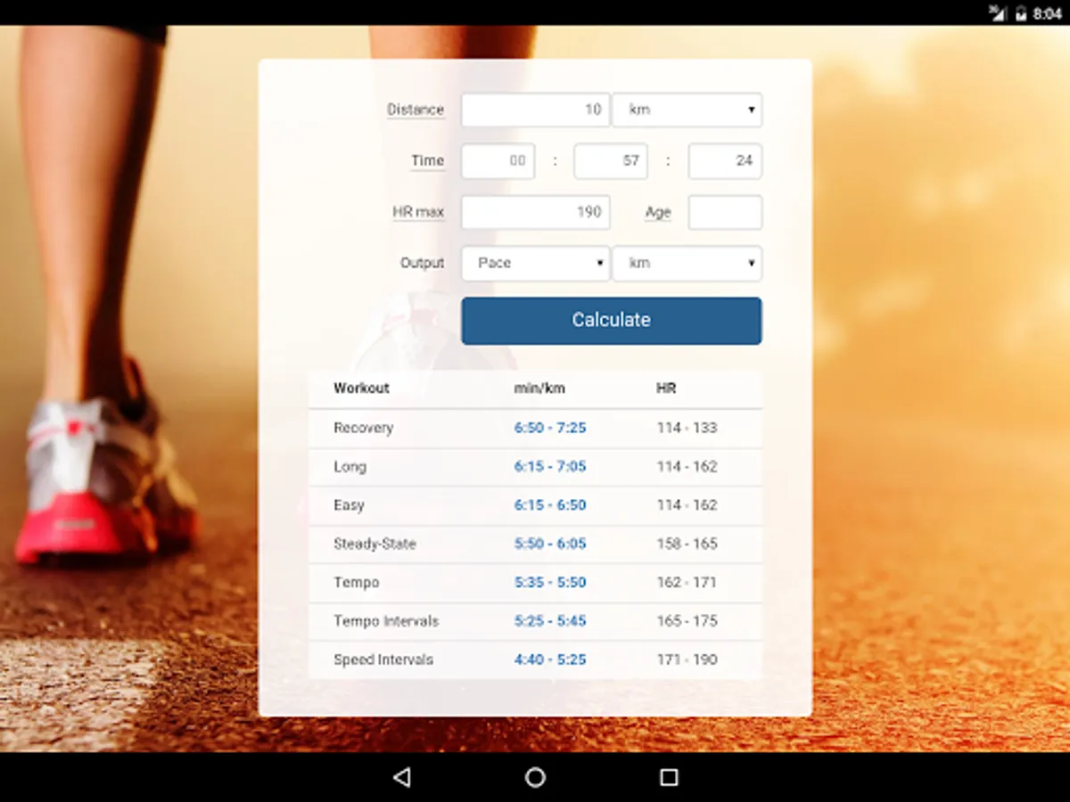 * Pace estimates are close to those of Greg McMillan's running calculator (McRun).