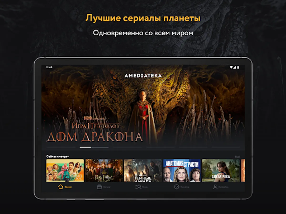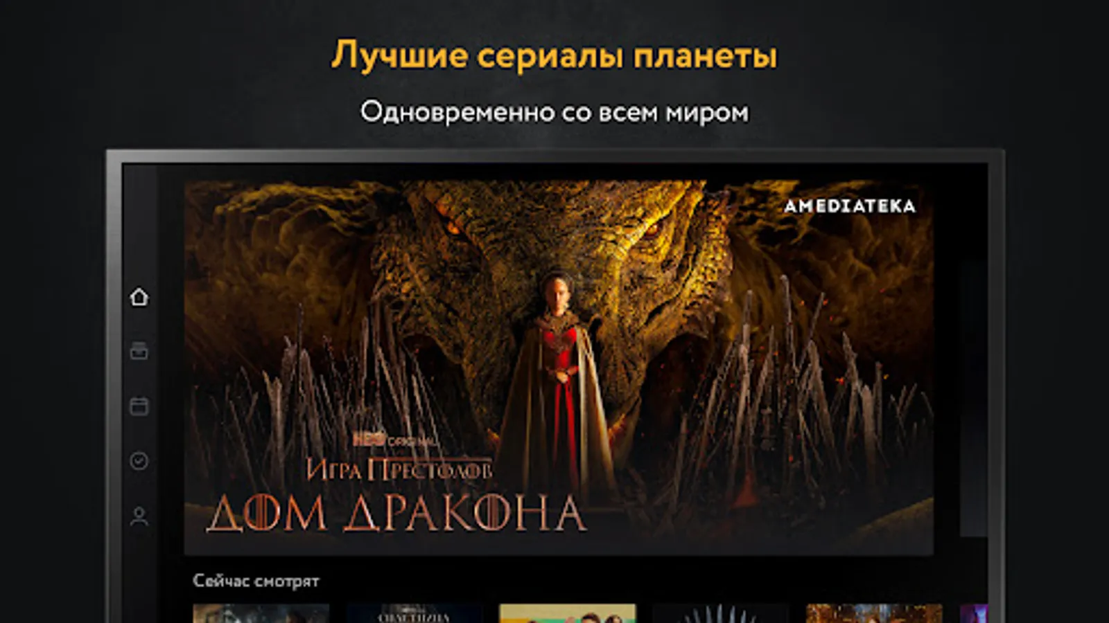 Amediateka is the best serials and films of the planet in Russian and in the original with subtitles. Watch new and classics: Game of Thrones, Dark Materials, White Lotus, House of the Dragon, Westworld, Euphoria, Billions, The Gilded Age and thousands of other projects are available to all subscribers Amedia libraries on Android TV and in the mobile app for Android devices.