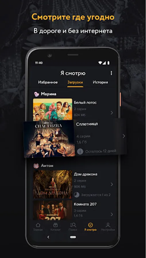 The service is available on the territory of Russia and a number of CIS countries, so when going abroad, do not forget to download series and movies to the device’s memory in advance using the content download function for offline viewing.