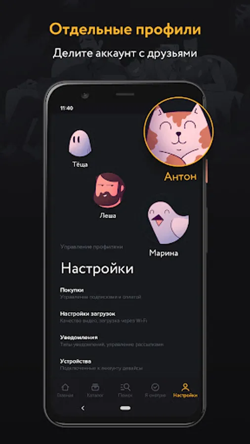 You can connect up to 5 devices to one account to watch TV shows and movies anytime, anywhere. Enjoy watching in professional voiceover or in the original language with subtitles in excellent HD quality.