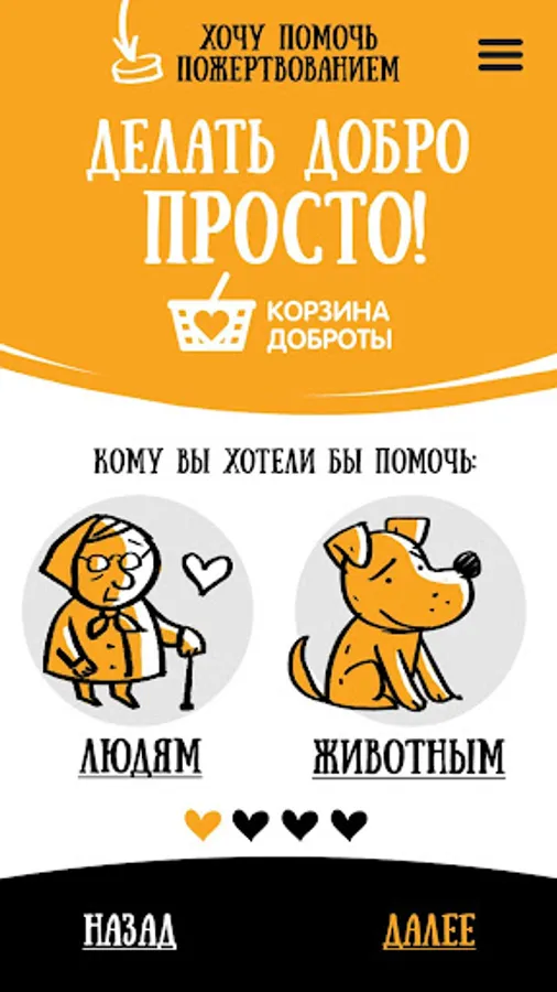 Download the application, choose the nearest suitable event (date, place and time) and start doing good deeds.